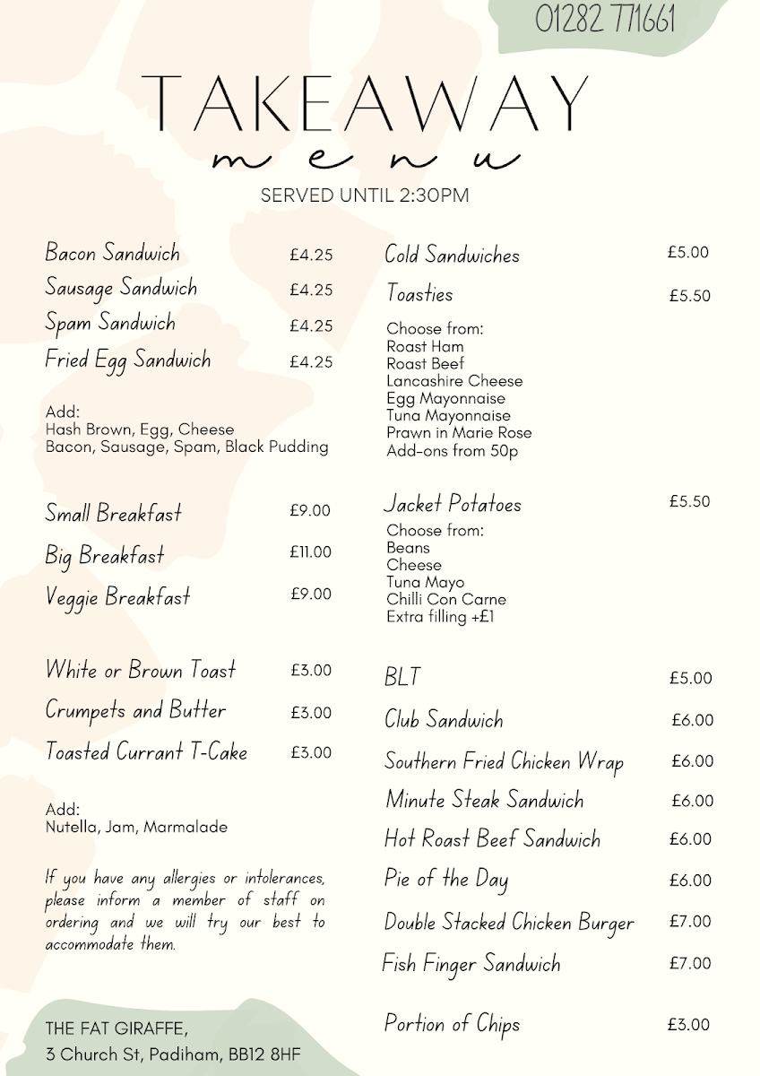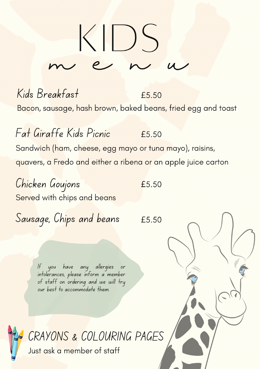 The Fat Giraffe Menu