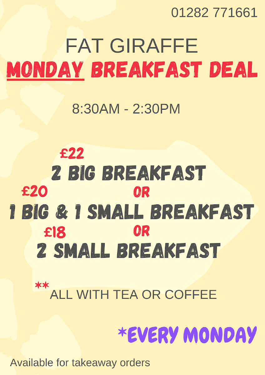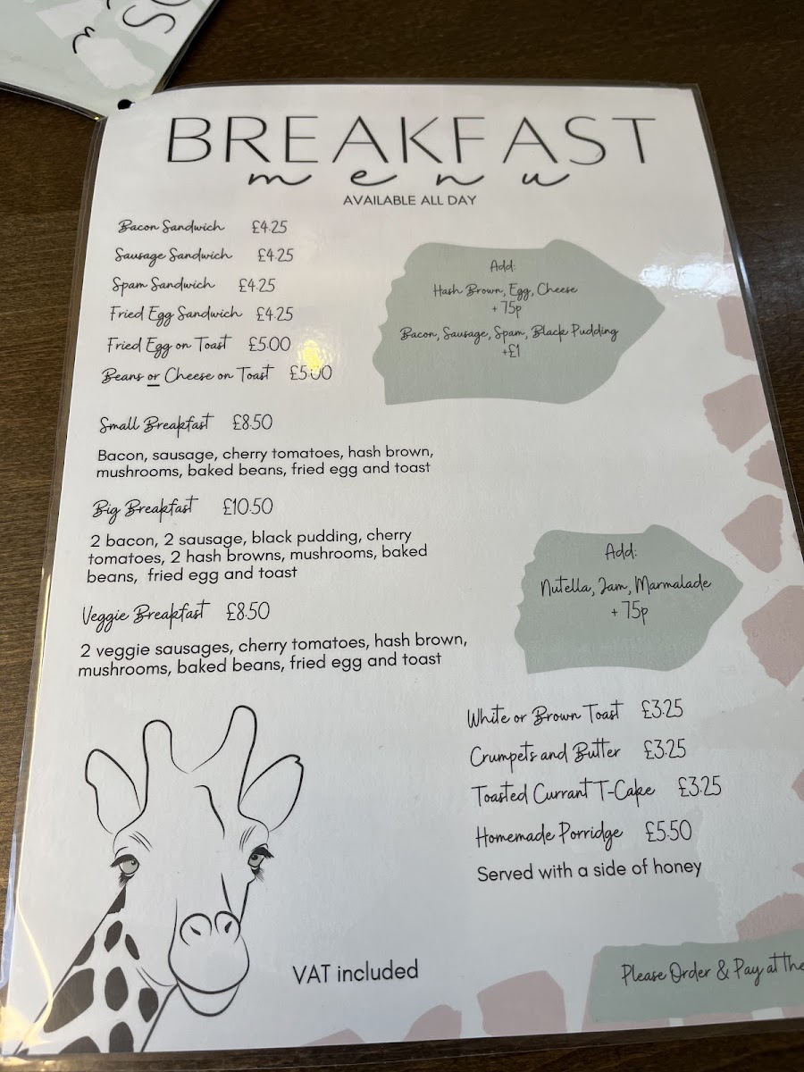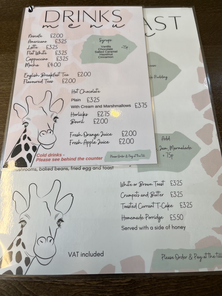 The Fat Giraffe offers a straightforward and inviting menu that fits perfectly with its cozy café atmosphere. Whether you’re dropping in for a morning pick-me-up or settling in for a relaxed lunch, the selection balances classic comfort food with simple, satisfying options.